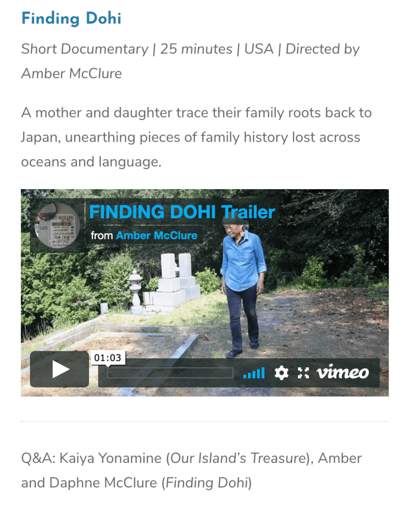 I am thrilled to announce the premiere of FINDING DOHI at the 2020 DisOrient Asian American Film Festival of Oregon, March 12-15, 2020. The film will screen on Saturday March 14 at 2:30 p.m. as part of the Shorts Program #2: Home.